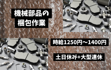 <白山・能美エリア>【時給1250円】かんたん梱包作業♪くるくるとラップで巻いたりプチプチで部品を梱包!土日休み+大型連休で休日はしっかりカクホ!